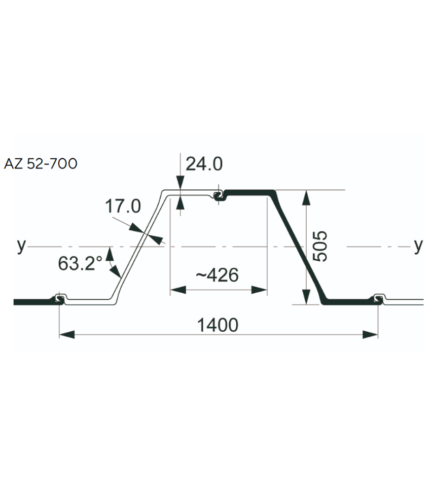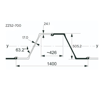 | 505,2 мм | S355GP | 5162 см3/м | 130403 см4/м |