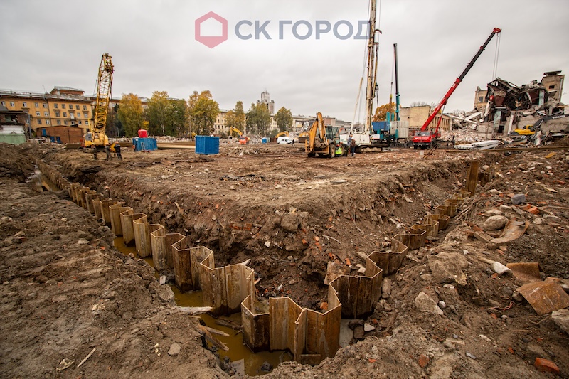 Успешно и в срок выполнен комплекс работ нулевого цикла с соблюдением всех норм и требований при работе вблизи охраняемых зданий культурного наследия. Оптимизация бюджета Заказчика за счет замены метода статического вдавливания на вибропогружение шпунтового ограждения с мониторингом. Применение собственной техники для работы в стесненных условиях, что значительно сократило затраты на арендное оборудование.