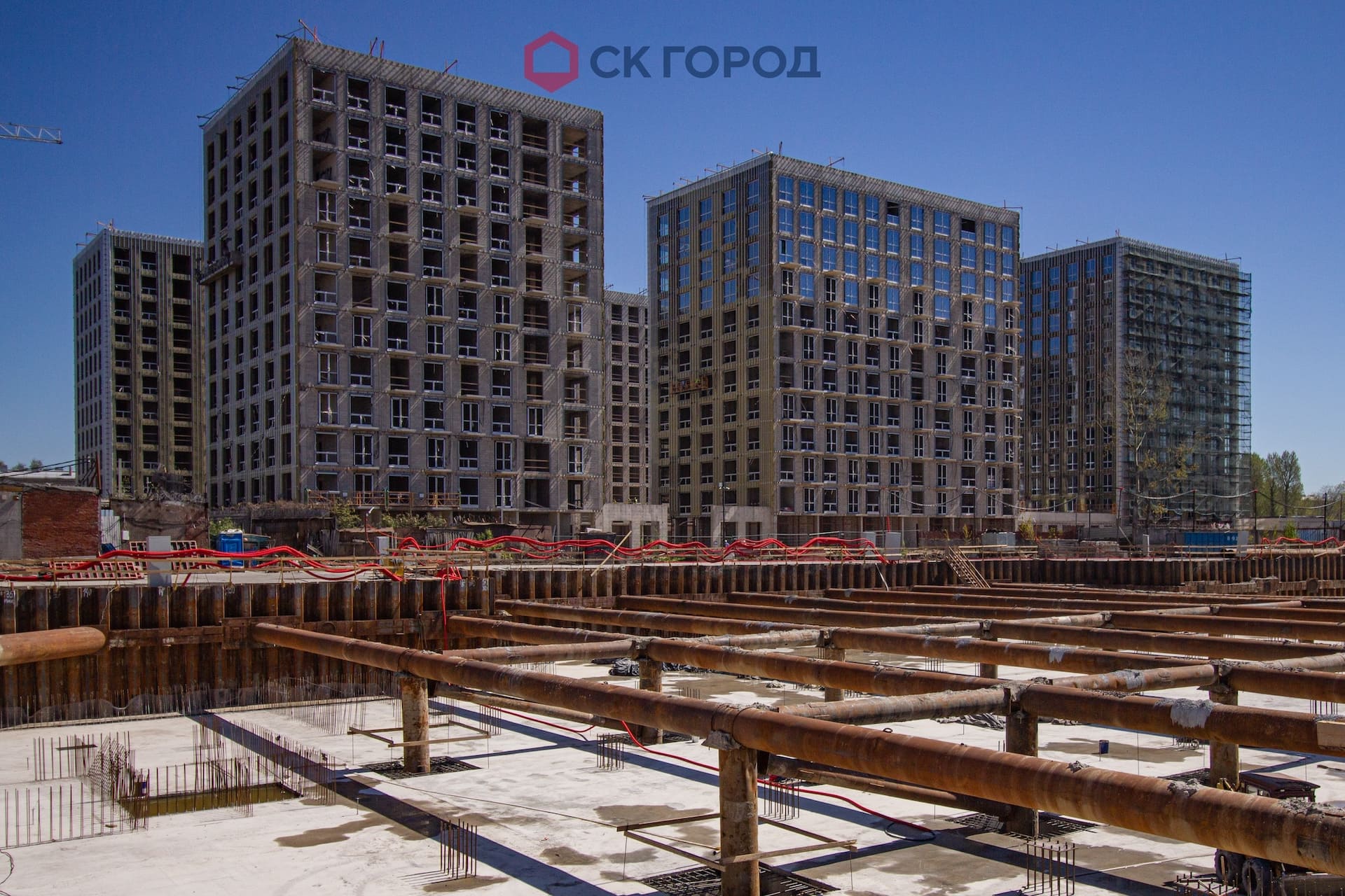 - Извлечение Из-за вышедших изменений проекта, сроки начала и условия извлечения шпунтового ограждения сильно изменились. Монолитные конструкции достигли четвертого этажа, имели конфигурацию с выступами на уровне цоколя - минимальный необходимый габарит для виброизвлечения шпунта не обеспечивался.