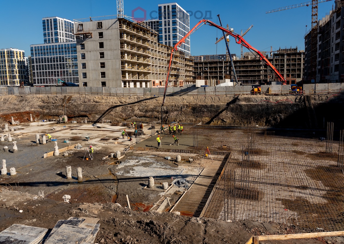 - Монолитные работы. При выполнении комплекса работ фиксировался устойчивый локальный водоприток в котлован, что представляло значительные риски для монолитных конструкций. Были приняты меры: