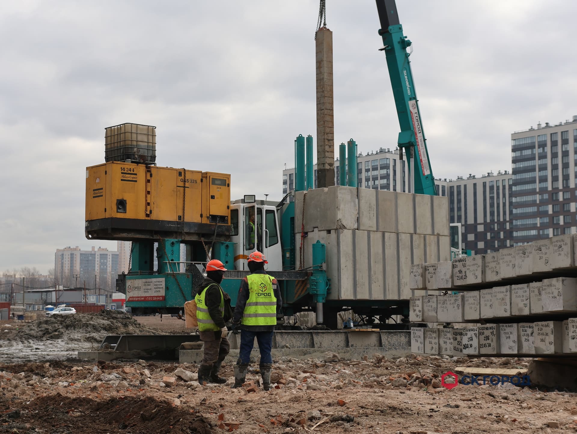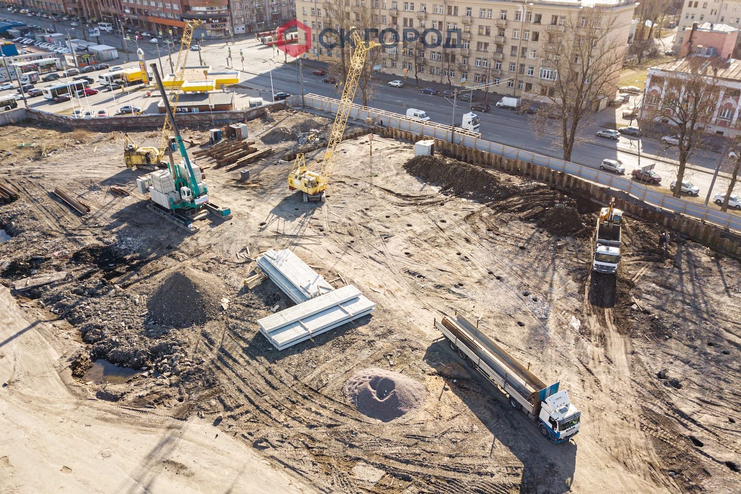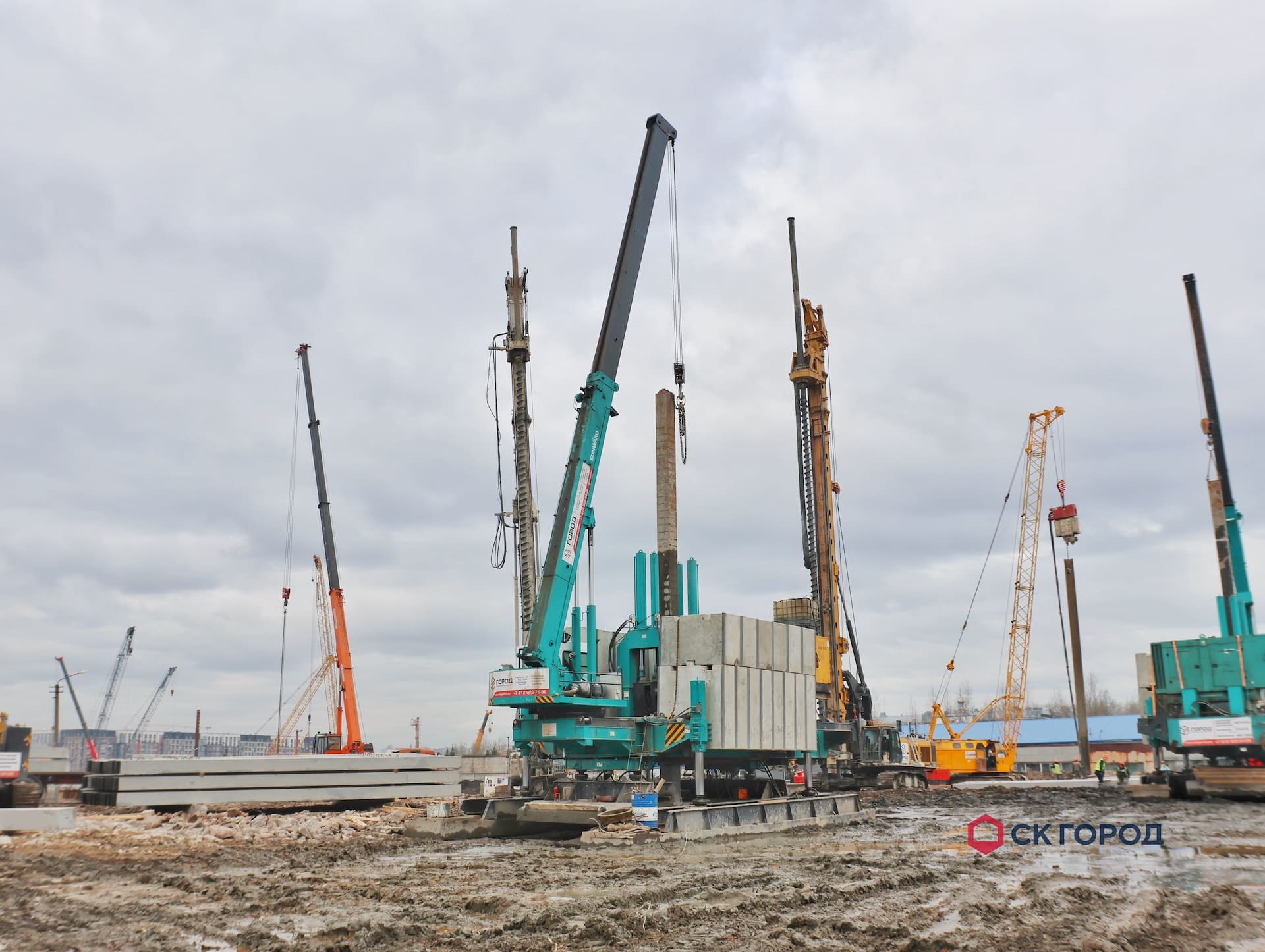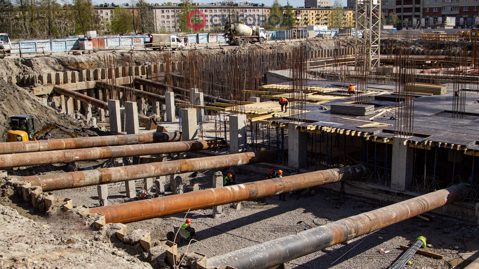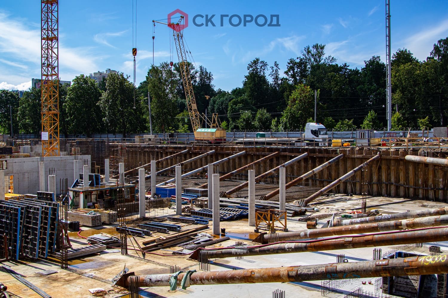 Выполнен комплекс работ по устройству свайного основания и шпунтового ограждения. Также выполнен дополнительный комплекс работ, обусловленный особенностями геологии - удаление препятствий и осушение котлована.