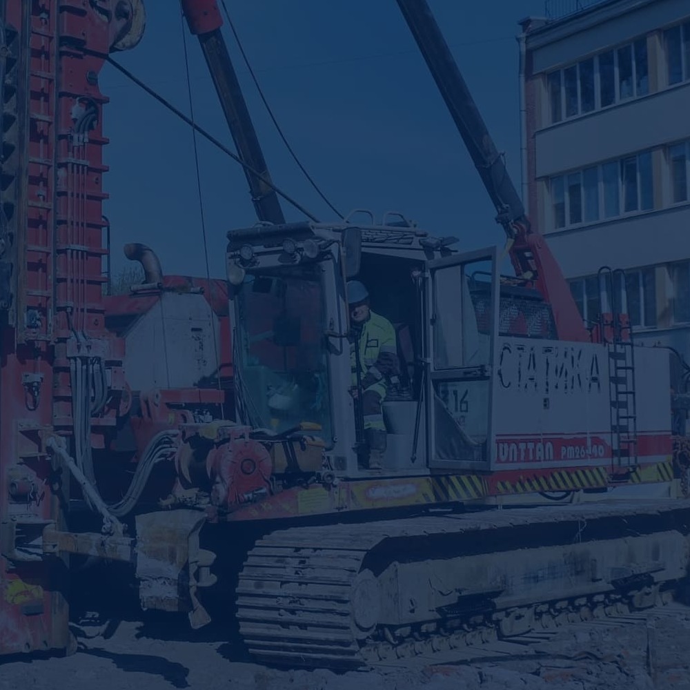 - Устройство свайного основания. Работы выполнялись методом статического вдавливания.