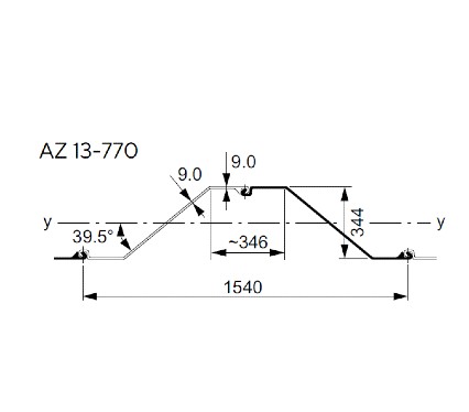 | 344 мм | S355GP | 1300 см3/м | 22360 см4/м |