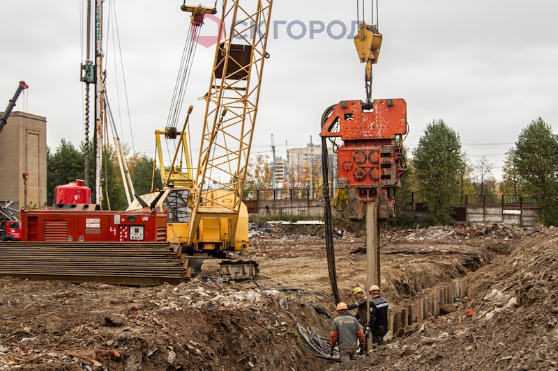 Выполнить комплекс работ по устройству свайного основания, шпунтового ограждения с ситемой крепления и земляные работы в стесненных условиях вблизи охраняемых объектов культурного наследия (часть сооружений проектного института им. Климова).