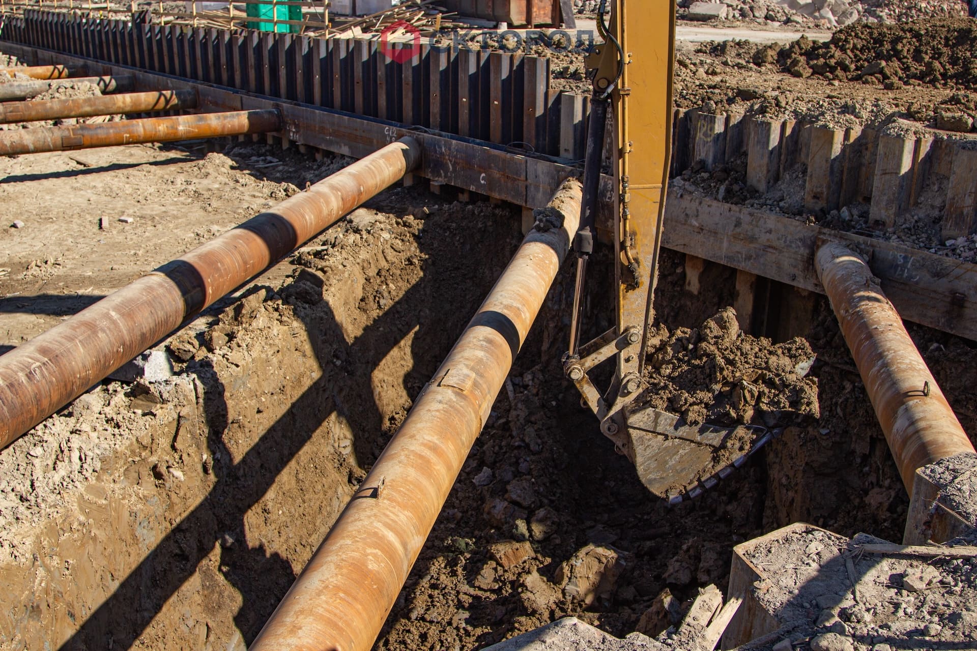 Полый комплекс работ: Шпунтовые работы, Устройство системы крепления, Вдавливание свай, Земляные работы